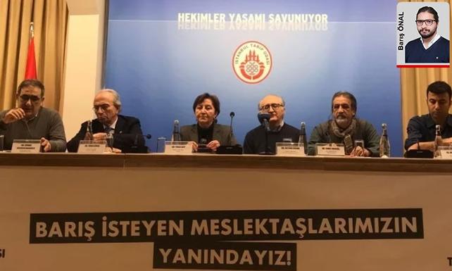 “Bu Suça Ortak Olmayacağız” bildirisine imza attıkları gerekçesiyle haklarında dava açılan va geçtiğimiz günlerde karara bağlanan davada Türk Tabipleri Birliği (TTB) Onur Kurulu üyesi Prof. Dr. Taner Gören’e ve İTO Yönetim Kurulu üyesi Prof. Dr. Huri Özdoğan’a 15 ay, İTO Yönetim Kurulu üyesi Doç. Dr. Haydar Durak’a 27 ay hapis cezası verildi. Hekimler İTO’da düzenlenen açıklamayla meslektaşları hakkında verilen cezalara tepki gösterdi. “Barış isteyen meslektaşlarımızın yanındayız” pankartının asıldığı açıklamaya KHK ile mesleğinden ihraç edilen Prof. Dr. Onur Hamzaoğlu ve geçen günlerde emekli olan Prof. Dr. Şebnem Korur Fincancı da katıldı. Basın açıklamasını İTO adına İstanbul Tabip Odası Başkanı Pınar Saip yaptı. Saip, 640 imzacı akademisyenin halen ağır ceza mahkemelerinde yargılanmakta olduğunu belirterek “Bugüne kadar 129 imzacı hakkında 1 yıl 3 ay ile 3 yıl arasında değişen cezalar verildi. İstanbul’da 18 ülke çapında 50’yi aşkın hekim yargılanmaktadır. Ülkemiz bu hukuk anlayışını hiç hak etmiyor” dedi. Barışın hekimlerin her zaman savundukları bir talep olduğunu söyleyen Saip, “Dünya Sağlık Örgütü ve Dünya Hekimler Birliği barış koşullarında yaşamı sağlığın sosyal belirleyicisi olarak saptamıştır. Meslektaşlarımız hekim olarak görevlerini yaptıkları, insanların ölmemesi için bir çağrıya imza attıkları için ağır cezada yargılanarak ağır cezalara çarptırıldılar” diye konuştu. Saip, “Hekimin öncelikli görevi insanın yaşamını ve sağlığını korumaktır” diyerek hekimlik meslek etiğine atıfta bulundu.