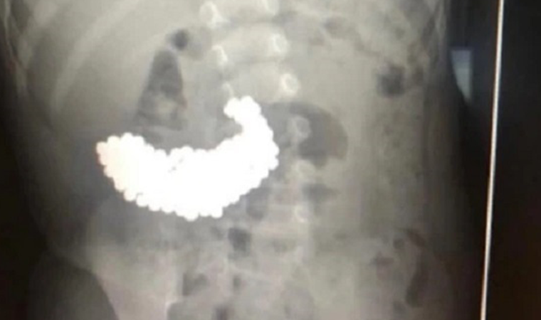 Rusya'nın başkenti Moskova'da 2 yaşındaki çocuk ailesinin haberi olmadan neodyum adı verilen stres bilyeleri olarak da bilinen 209 adet mıknatıs topunu yuttu. Birkaç gün sonra çocuğun dışkısının siyah olduğunu fark eden aile doktora başvurdu. Hastaneye görütülen çocuğun röntgeni çekildi. Rötgende çocuğun midesindeki renkli mıknatıs topu ortaya çıktı.
