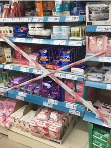 İçişleri Bakanlığı’nın yayımladığı Market Tedbirleri Genelgesi ile zorunlu temel ihtiyaçlar kapsamındaki ürünlerin dışında herhangi bir ürünün satışına izin verilmeyeceği açıklandı. Marketlerde satılmasını engellemek için bant çekilen ürünler arasında hijyenik pedlerin de yer aldığı, menstrüel ürünlerin satışının yapılmadığı görüldü.