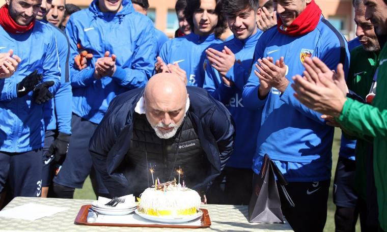 İstikbal Mobilya Kayserispor Teknik Direktörü Hikmet Karaman'ın antrenmanda doğum günü kutlandı.