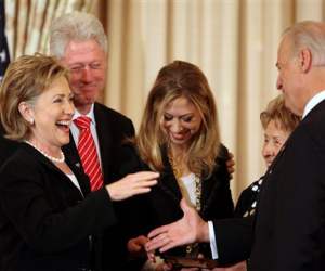 ABD Dışişleri Bakanı Hillary Clinton, yemin töreninde, Monica Lewinsky olayına atıfta bulunarak, eşi eski ABD Başkanı Bill Clinton'a imalı bir göndermede bulundu.