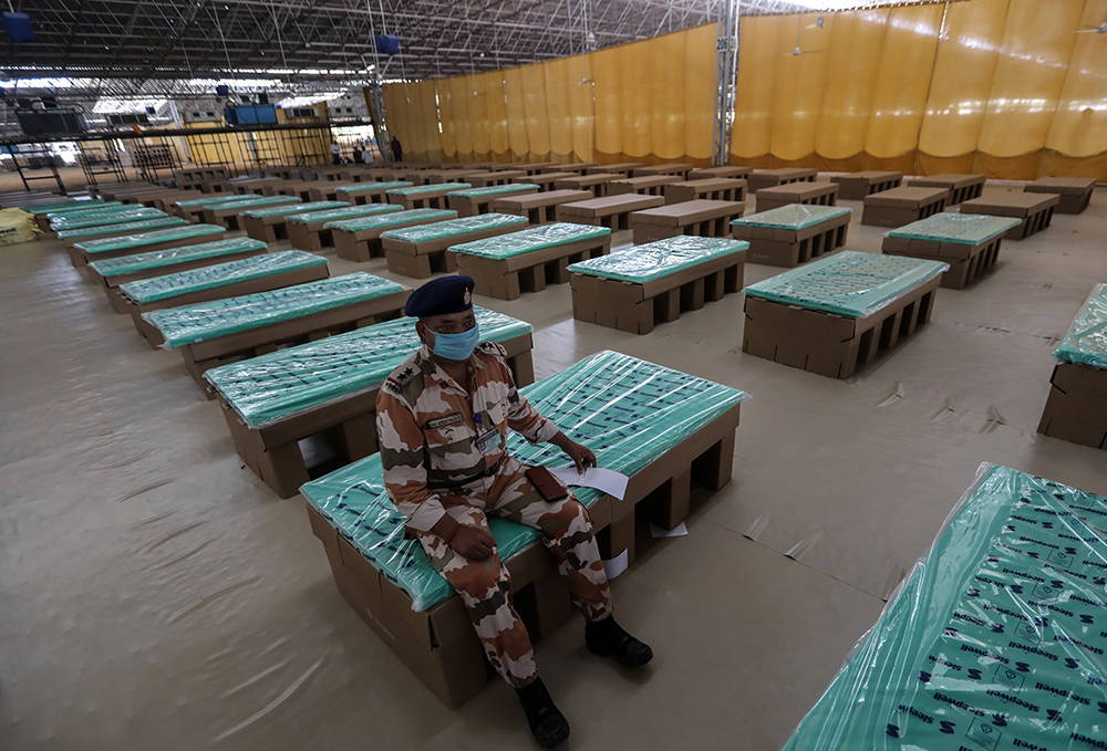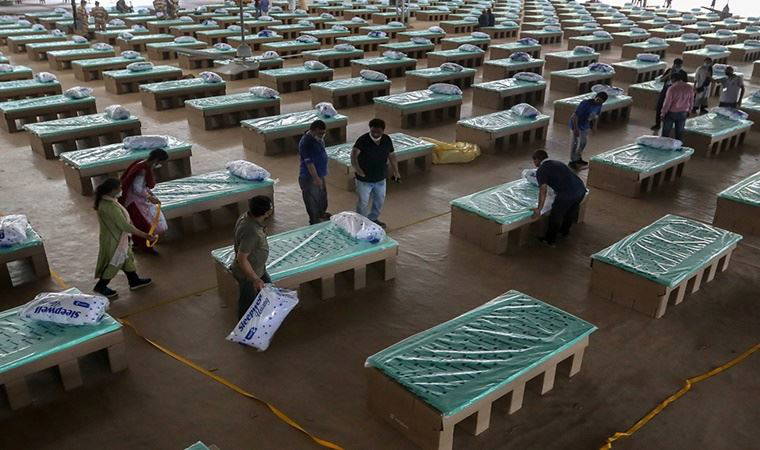 Hindistan’da yeni tip koronavirüs (Covid-19) salgınında son 24 saatte 17 bin 296 vaka tespit edildi. Salgının önüne geçemeyen yetkililer giderek artan vaka sayısının ardından yeni bir önlem aldı. Başkent Yeni Delhi’de bulunan Radha Soami Satsang Beas kampüsü korona virüs hastanesine dönüştürüldü. Tesiste Covid-19 hastaları için gönüllüler tarafından kartondan yataklar hazırlandı. Tesisin 10 bin yatak kapasiteli olduğu belirtildi.