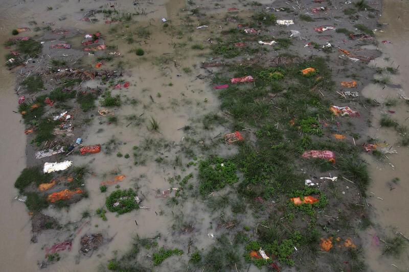 Ancak mevsimsel Muson yağmurları sonrasında Ganj Nehri'nin taşması, kıyılara gömülen yüzlerce cesedin yüzeye çıkmasına neden oldu.