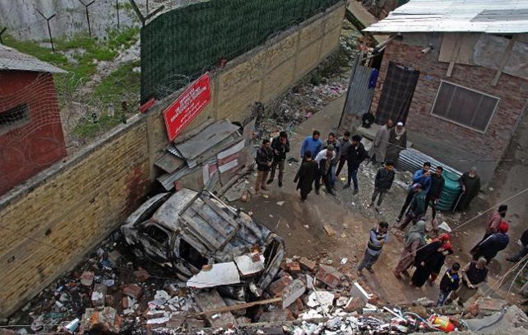 Hindistan'ın Cammu Keşmir bölgesindeki Hindistan askeri kampı yakınlarında bombalı saldırı gerçekleştirildi. Vatandaşlar, saldırı sonrası çevrede hasar gören bir aracı inceledi.