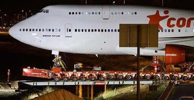 Türk iş insanları Atilay Uslu ve Yıldıray Karaer'in sahibi olduğu Hollanda ve Benelüks ülkelerindeki en büyük otelin bahçesine konulacak Boeing 747 tipi uçak otoyoldan geçti.