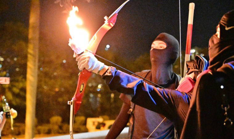 Hong Kong’da gösteriler devam ediyor. Daha önce eylemcilerin ok ve yay kullandıkları, bambudan inşa ettikleri mancınık ile polise kiremit attıkları kameralara yansımıştı. Yerel medya, bir sağlık görevlisinin bacağından ok ile vurulduğunu açıkladı. Sosyal medyada paylaşılan görüntü ve fotoğraflarda, sağlık görevlisinin bacağının arka kısmından ok ile vurulduğu görüldü.