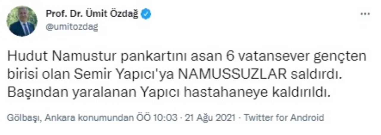 Ayyıldız Hareketi lideri ve İstanbul Milletvekili Ümit Özdağ ise saldırıya "Hudut Namustur pankartını asan 6 vatansever gençten birisi olan Semir Yapıcı'ya NAMUSSUZLAR saldırdı. Başından yaralanan Yapıcı hastahaneye kaldırıldı." diyerek tepki gösterdi.