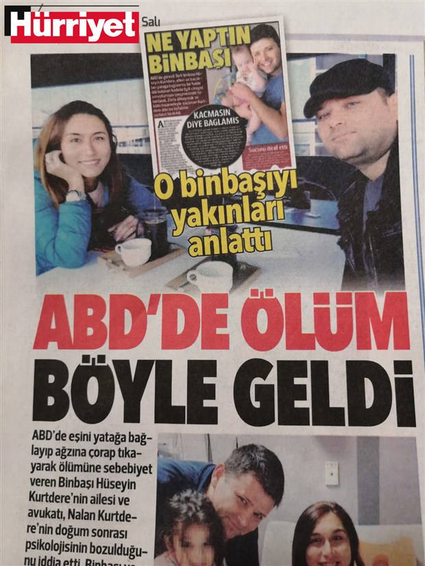 ABD'nin Florida eyaletinde kurulan CENTCOM'da görev yapan binbaşı Hüseyin Kurtdere, evli olduğu Nalan Kurtdere'yi yatağa bağlayıp ağzına çorap tıkarak katletti.