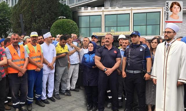 Açıklamanın ardından İBB çalışanları alkışlarla eylem yaptı. Eyleme, birçok İBB birimi ve şirketin çalışanlarının yanı sıra avukatlar ve imamlar da katıldı.