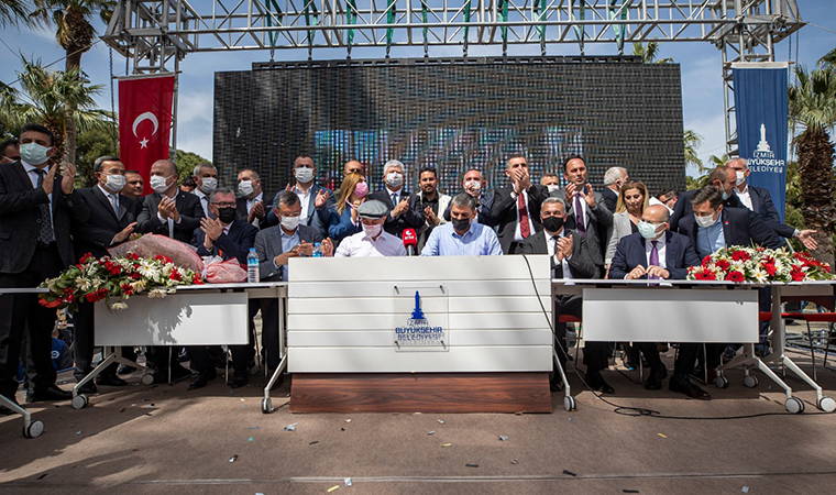 Soyer, “Bugün imzaladığımız sözleşme ile tüm taban ücretlerini, yüzde 21 artırıyoruz. Diliyorum yaptığımız maaş artışı, bu zor günlerde ve büyüyen hayat pahalılığı karşısında çalışanlarımıza ve ailelerine bir nefes olur, buruk da olsa bayram olur. Tüm sendikalı çalışanlarımız, önceki yıllarda 3 ayda 1 olmak üzere, eşit dört taksitle aldığı 112 yevmiye ikramiyeyi, 2022 yılının başından itibaren 2 ayda 1 alacak. Ramazan ve Kurban Bayramı öncesi, yılda 2 eşit taksitte ödediğimiz toplam bin 752 TL tutarındaki Birleştirilmiş Sosyal Yardım, artık 12 eşit taksitte olmak üzere 3 bin 600 TL olarak ödenecek. Buradaki artış oranı yüzde 100’ün üzerindedir. Bebeği olan personelimize, her çocuk için bin 100 TL doğum yardımı, işçinin evlenmesi durumunda bin 250 TL evlilik yardımı, işçinin hayatını kaybetmesi halinde, eşine, yoksa çocuklarına 6 aylık ücreti tutarında ölüm tazminatı, işçinin iş kazası veya meslek hastalığı sonucunda yaşamını yitirmesi nedeniyle eşine, yoksa çocuklarına 1 yıllık ücreti tutarında tazminat, sel, deprem, vb. doğal afetlerden ve yangından zarar gören çalışanlarımıza, 26 bin TL’ye kadar afet yardımı sözleşmeye girdi. Yeni Toplu İş Sözleşmesine ayrıca 'Ayrımcılığın Önlenmesi ve Toplumsal Cinsiyet Eşitliği' maddesi de girdi.Bu kararımız, İstanbul Sözleşmesi’nin esaslarına, farklı sivil toplum kuruluşlarıyla imzaladığımız protokollere ve elbette kadın işçilerimize verdiğimiz söze sadık kalmamızın bir gereğidir” dedi.