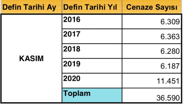 İstanbul Büyükşehir Belediyesi 'nde ilçe belediyelerine devredilmiş bir yetki yok. İstanbul'da kim ölürse ölsün, nerede ölürse ölsün hepsinin bildirileri İstanbul Büyükşehir Belediyesi Mezarlıklar Daire Başkanlığı'na gelir. İstersek nakil edelim, istersek defin edelim bunların hepsi bizim istatiğimize girer. Hiçbir yurttaşın bizden habersiz bir yere götürülmesi söz konusu değil o yüzden bizim rakamlarımız net.