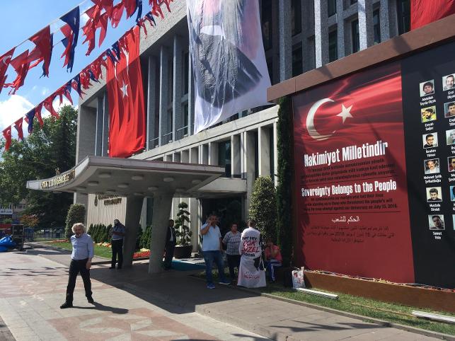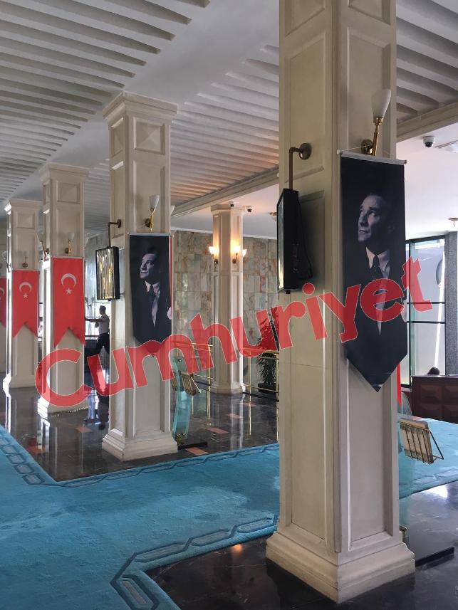 İBB binası içine de Atatürk posterleri ve türk bayrakları asıldı.