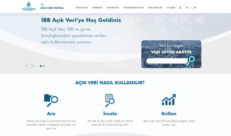 data.ibb.gov.tr adresinden erişilen sitede paylaşılan 88 veri seti haricindeki dataya erişim için veri talebinde de bulunulabiliyor.