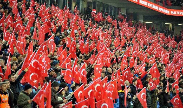 Karşılaşma öncesi Medical Park Stadymu Türk bayraklarıyla donatıldı. Tribünlere