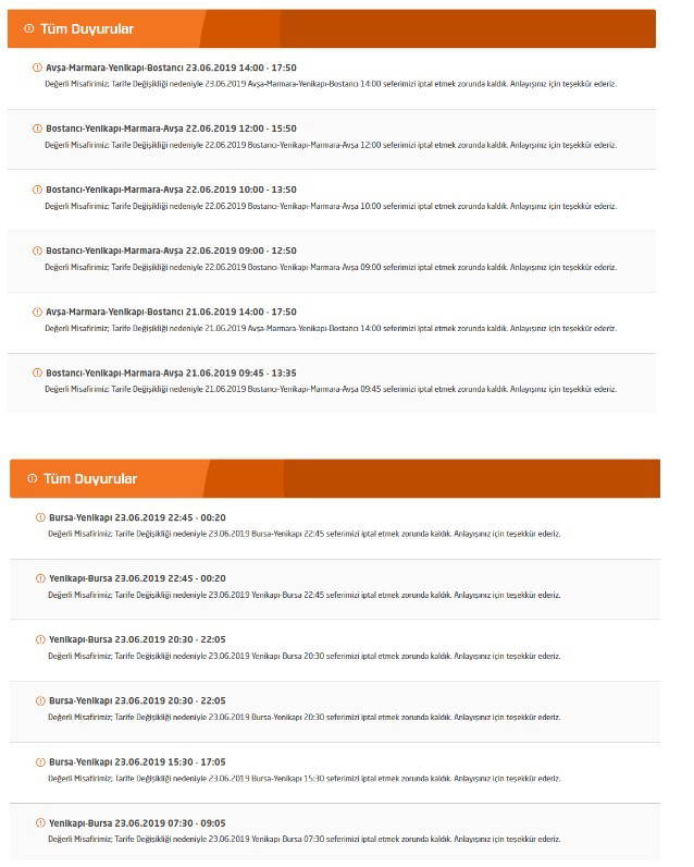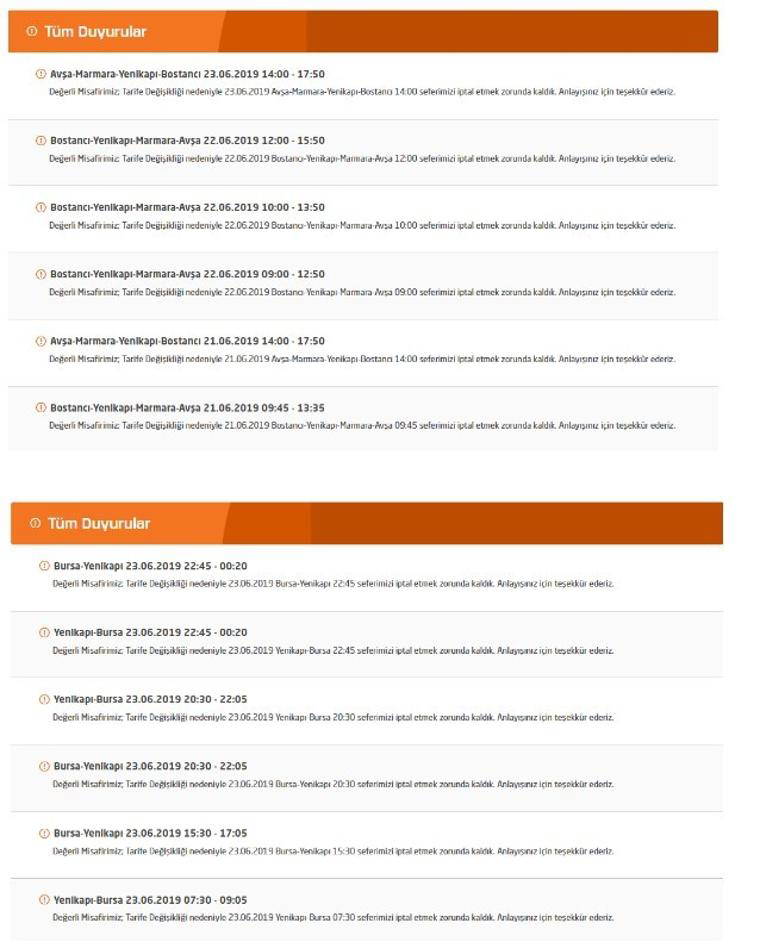 Oda TV'de yer alan habere göre: İDO’dan yapılan açıklamalarda sefer iptalinin gerekçesi olarak tarife değişikliği gösterildi.