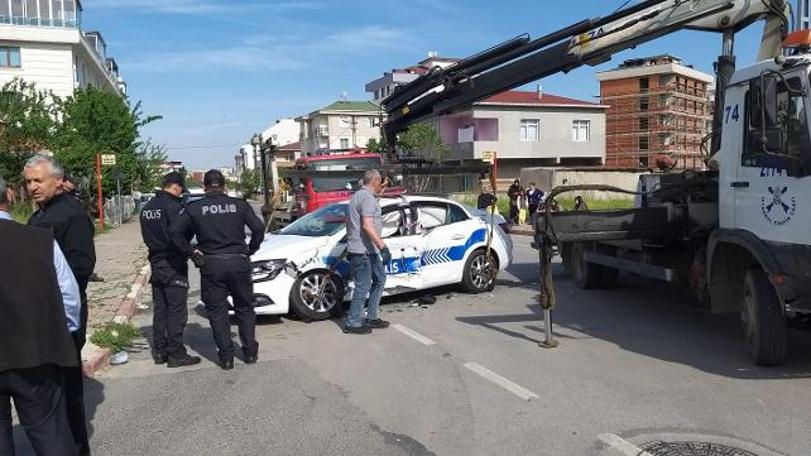 Sultanbeyli'de iki caddenin kesiştiği noktada İETT otobüsü polis aracına çarptı. Kazada 2 polis yaralandı.