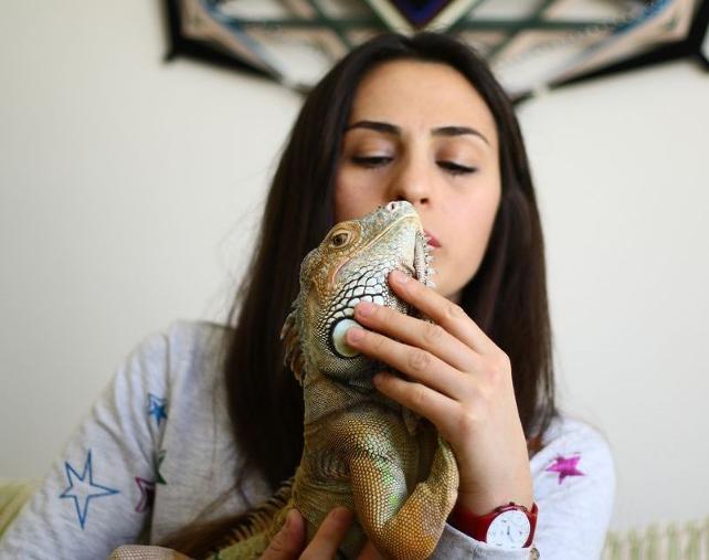 Ankara’da yaşayan ve fen bilgisi öğretmeni Zehra Yıldız, tropikal iklimde yaşayan egzotik bir kertenkele türü olan ve adını Şinasi koyduğu iguana ile 10 yıldır birlikte yaşıyor.