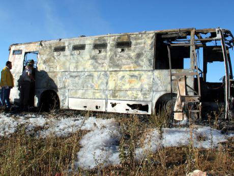 Şoför, elektrik aksamda sorun yaşandığını fark edip, askerlerden birinin tüfek kayışı ile kapıyı içeriden bağlamasını söyledi. Yarım saat sonra ise aracın içine duman dolunca araçta yangın olduğu fark edildi.