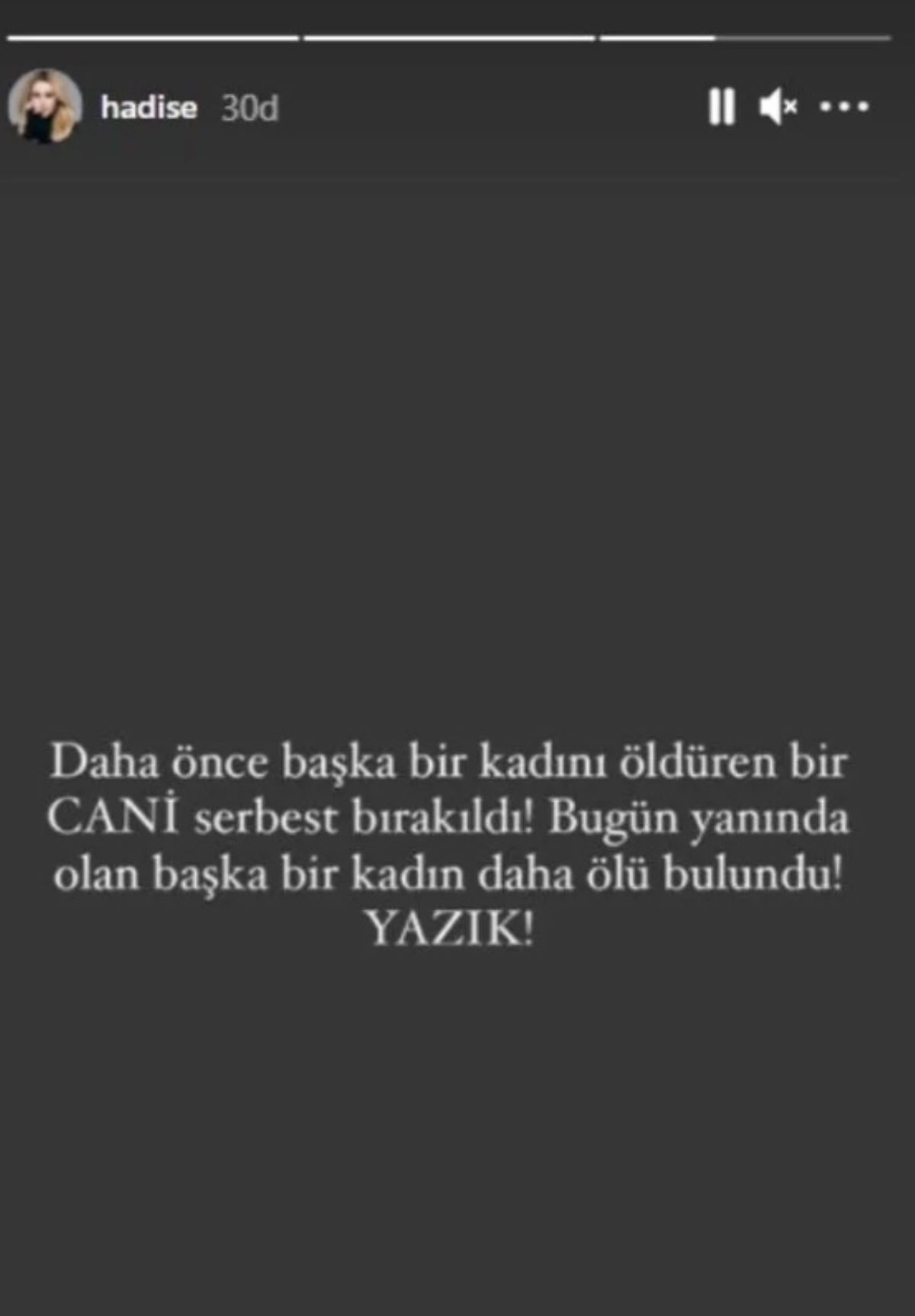 Ünlü şarkıcı Hadise ise Ümitcan Uygun'la ilgili paylaşımında "Daha önce başka bir kadını öldüren bir cani serbest bırakıldı. Bugün yanında bulunan başka bir kadın daha ölü bulundu. Yazık" demişti.