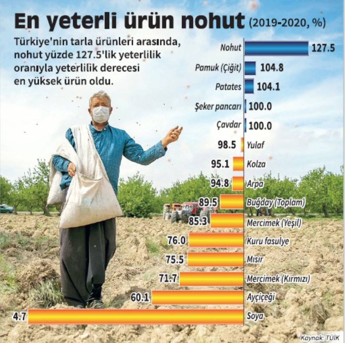 Dünyada yaşanan bu sorunlar Türkiye’yi de etkiliyor. Son yıllarda kuraklıkla boğuşan Türkiye, gıdada kendi kendine yetebilmekten uzak. Amerika Birleşik Devletleri Tarım Bakanlığı’nın (USDA), Türkiye’nin tahıl ve yem üretimine ilişkin kaleme aldığı 27 Temmuz tarihli raporda; Türkiye’de bu yıl yaşanan kuraklığa, buğday ve arpadaki düşük rekoltelere ve Türkiye’nin ithal ettiği ürün miktarının artacağına dikkat çekildi. Rapora göre Türkiye’de 1 Ekim 2020 ile 30 Haziran 2021 arasında gerçekleşen ortalama yağış miktarı geçen yıldan yüzde 23 daha az olarak kaydedildi.