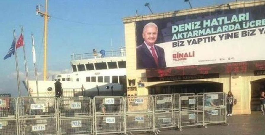 İstanbul Kadıköy’deki vapur iskelesine asılan dev Binali Yıldırım pankartı için CHP Kadıköy İlçe Başkanlığı tarafından İlçe Seçim Kurulu Başkanlığı’na yapılan başvuru sonucunda pankartın kaldırılması kararı alındı.