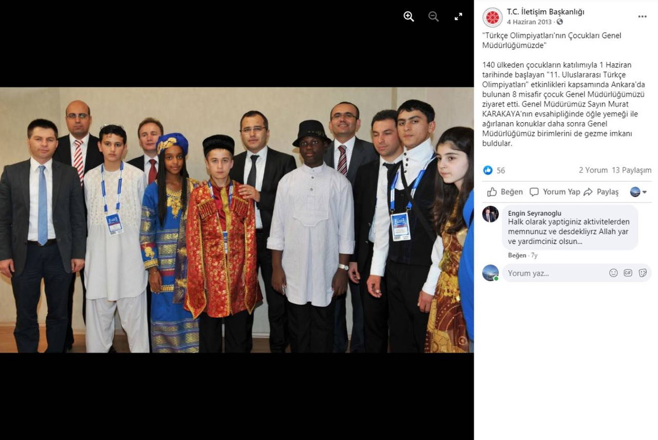 Fahrettin Altun'un başkanlığını yaptığı Cumhurbaşkanlığı İletişim Başkanlığı'nın Facebook hesabında, 4 Haziran 2013 tarihine ait 'Türkçe Olimpiyatları' paylaşımı ortaya çıktı.