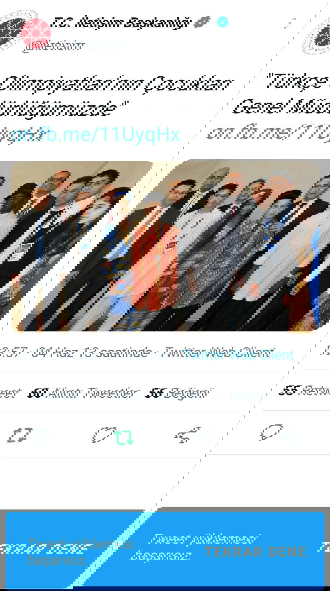 Yine aynı tarihte İletişim Başkanlığının resmi Twitter hesabından da 'Türkçe Olimpiyatları' paylaşımı yapıldığı görüldü.