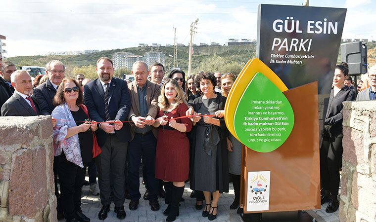 Aydın’in Çine ilçesi Karpuzlu mahallesinde 1933 yılında yapılan muhtarlık seçimlerini kazanan Türkiye’nin ilk kadın muhtarı Gül Esin’in adını taşıyan park Harmandalı Gazi Mustafa Kemal Atatürk Mahallesi 9 Eylül Caddesi’nde açıldı. Parkın açılışına CHP İzmir Milletvekili Atilla Sertel, İzmir Büyükşehir belediye Başkanı Tunç Soyer’in eşi ve İzmir Köy Koop Birlik Başkanı Neptün Soyer, CHP Çiğli İlçe Başkanı Mert Özcan, İYİ Parti Çiğli İlçe Başkanı Özgür Doğan, Başkan Gümrükçü’nün annesi Nilgün Gümrükçü, Gazi Mustafa Kemal Atatürk Mahallesi Muhtarı Sevcan Yalman, CHP Kadın ve Gençlik Kolları Yönetimi, muhtarlar, meclis üyeleri, partililer ve çok sayıda vatandaş katıldı. Açılışa katılanlara defte ağacı fidanı hediye edildi.