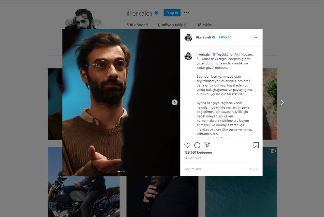 Dizide Akif Hoca karakterine hayat veren oyuncu İlker Kaleli, dizye Instagram hesabında yaptığı paylaşımla veda etti.