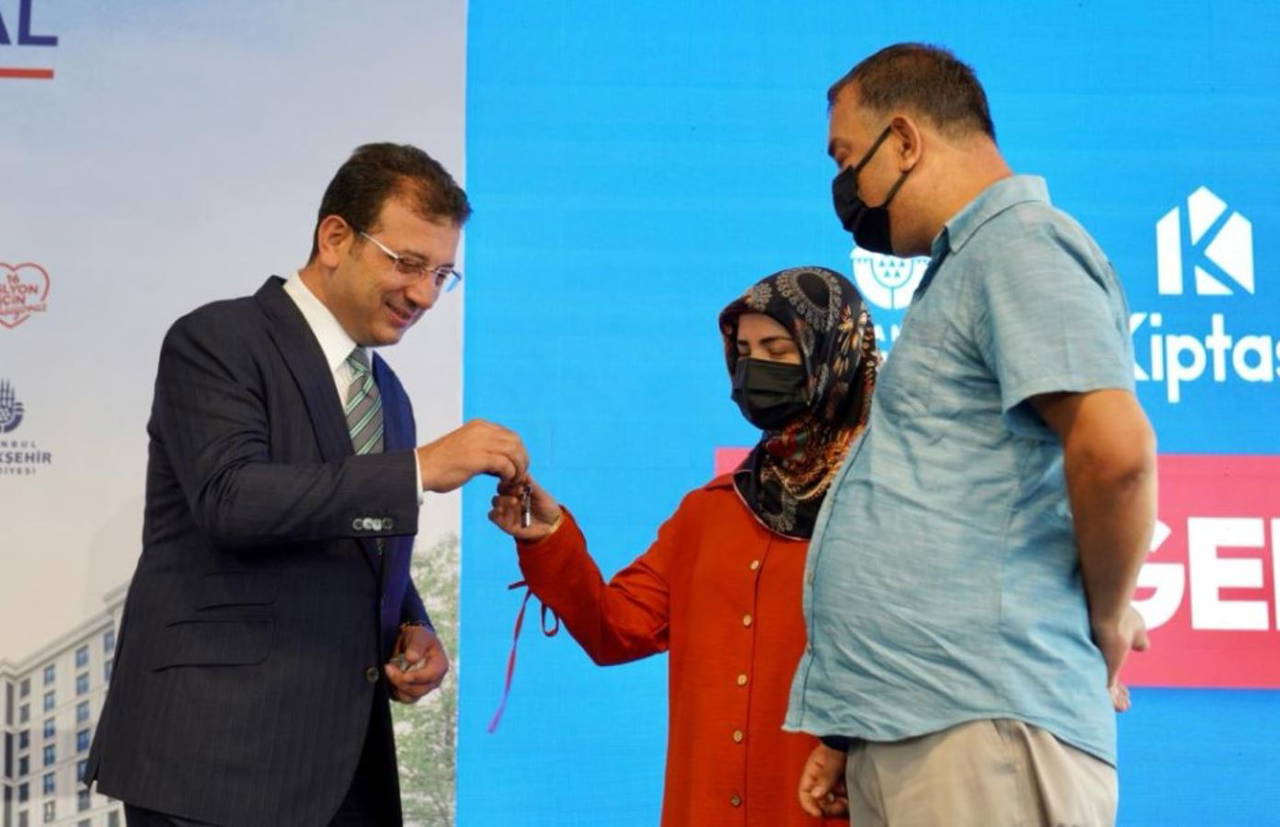 22 yılda çok güzel işlerin de yapıldığının altını çizen İmamoğlu, “Ama o hızla gidersek bize gereken seksen senedir. Sorunları hissedip hep beraber el ele, kol kola vererek çözüm bulduğumuz süreçleri, ortak akılla yönettiğimiz, akıldan ve bilimden uzaklaşmadığımız, tek başına kişinin bireylerin değil, ortak akılla süreçleri yönettiğimiz bir sürecin Türkiye'mizin ve İstanbul'umuzun her ortamında hakim olmasını diliyorum. Siyasetin değil, ortak aklın ve bilimin izinde yürümemizin daha doğru olacağını düşünüyorum. Bu noktada, tüm paydaşların aynı duyguları paylaşmasını ve başarılı olmamızı diliyorum hem İstanbul’umuzun hem ülkemizin ve milletimizin huzuru ve bekası için” diye konuştu. Konuşmaların ardından İmamoğlu, CHP İstanbul milletvekili Kılınç ve Arısoy, hak sahibi 3 çifte sembolik olarak anahtarlarını sundu. İmamoğlu ve beraberindeki heyet, törenin ardından örnek bir daireyi gezdi.
