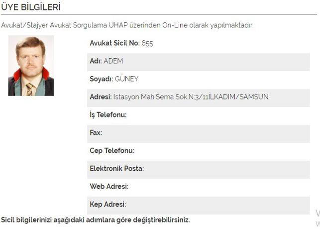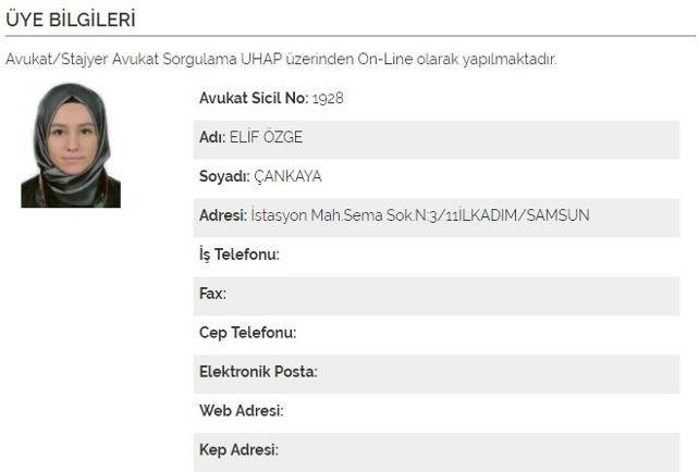Samsun Barosu levhalarından incelendiğinde Elif Özge Çankaya ile Adem Güney'in aynı adreste avukatlık yaptığı görülüyor. İkisinin de adresi İstasyon Mahallesi Semla Sokak No:3/11 İlkadım olarak görülüyor.