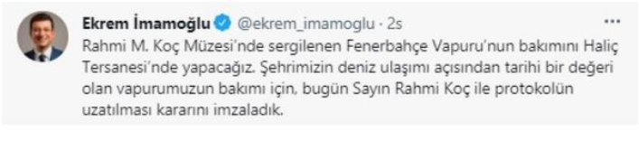 İmamoğlu, Twitter'dan konuya ilişkin şu açıklamayı yaptı: