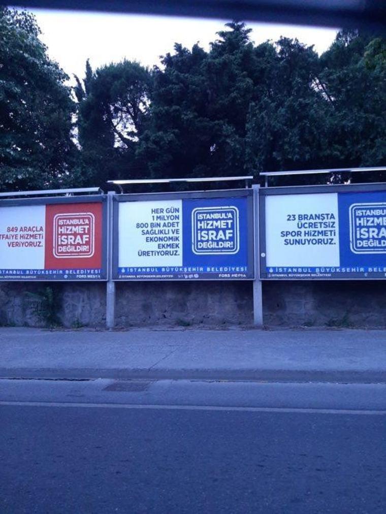 Kaldırılan afişlerin yanı sıra İBB imzalı çok sayıda afiş de değiştirildi. Köprü üstlerine asılan ve içinden israf ibaresinin kaldırıldığı örnekler: