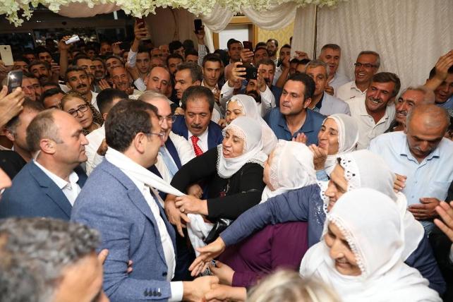 Düğünde, CHP Genel Başkanı Kemal Kılıçdaroğlu’nun mesajı da okundu. Çiftin nikahını Batman Belediye Başkanı Mehmet Demir kıyarken, şahitliklerini İmamoğlu ile birlikte CHP Kadın Kolları Genel Başkanı Fatma Köse yaptı. Burada kısa bir konuşma yapan İmamoğlu, “İki kardeşimin mutlu olacakları bir yuvanın kurulmasına şahitlik ettik. Öncelikle Allah mesut etsin sizleri. Mutluluklar diliyorum. Birbirinizi sevgiyle ve saygıyla beslemenizi diliyorum. Birbirinizi sevdiğiniz gibi, anne – babalarınıza da sevgiyi, saygıyı lütfen unutmayın. Aile birliğiniz, ömür boyu ilk günkü gibi heyecanla ve sevgiyle dolu olsun. İyi evlatlarınız olsun. Maneviyatı güçlü, geçmişini bilen, geleceğe umutla bakan evlatlarınız olsun. İyi eğitim alsınlar. Akıldan, bilimden yana evlatlar olursa, onlar gerçekten sağlıklı bireyler olacaktır. Yolunuz açık olsun” dedi.