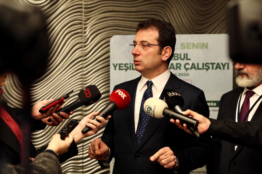 İstanbul Büyükşehir Belediye Başkanı Ekrem İmamoğlu, “İstanbul Yeşil Alanlar Çalıştayı”nda açılış konuşmasını yaptıktan sonra kameraların karşısına geçti.