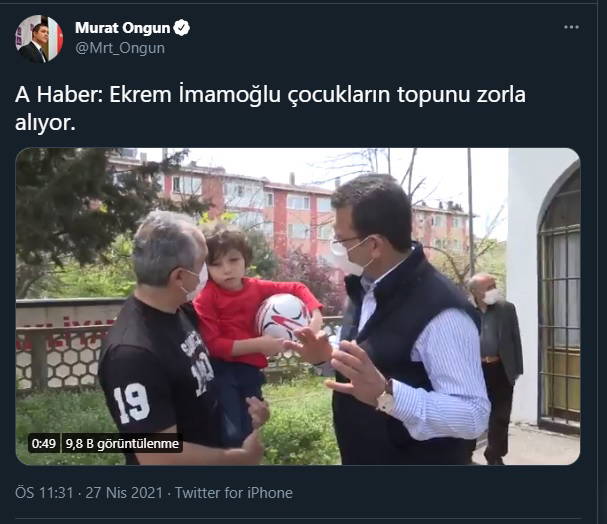 A Haber: Ekrem İmamoğlu çocukların topunu zorla alıyor. pic.twitter.com/HwQMfBqWaY