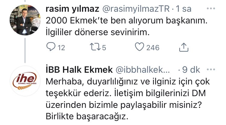 İBB Başkanı İmamoğlu, uygulamayı Twitter adresinden duyurdu ve tüm ekmekleri satın alarak ihtiyaç sahibi vatandaşlara dağıtılmasını talep eden bir hayırsevere teşekkür etti. İmamoğlu'nun ekmek bağışına teşekkürü ise sosyal medyada yardım kampanyasına dönüştü.