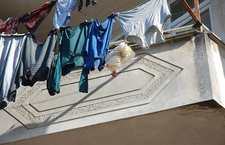 Apartmanın 1'inci katındaki dairenin balkonunda, çamaşır ipine baş aşağı bacağından asılı halde duran tavuğu görenler durumu itfaiyeye bildirdi. Olay yerine gelen ekipler, itfaiye aracıyla tavuğu kurtardı. Polis olayla ilgili soruşturma başlatırken, dairede o sırada kimsenin bulunmadığı belirtildi.