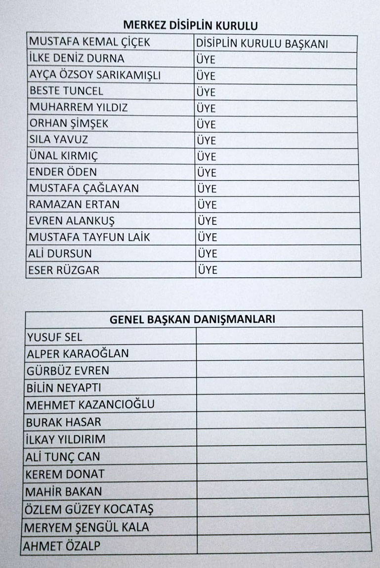 Merkez Yönetim Kurulu Üyeleri: Neşet Elaldı, Ali Rıza Büyükuslu, İpek Özkan Sayan, Serkan İleri, Çiğdem Bayraktar Ör, Fatih Pala, Özgün Öztunç, Asuman Ali Güven, Burak Savtur, Süleyman Erguner