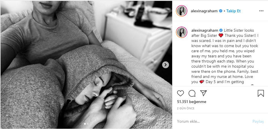Graham’n, ateşinin yükseldiği ve nefes darlığı çektiği belirtildi. Model sosyal medya paylaşımında durumunun kötü olmadığını ve hastanede tedavisinin devam ettiğini bildirdi.