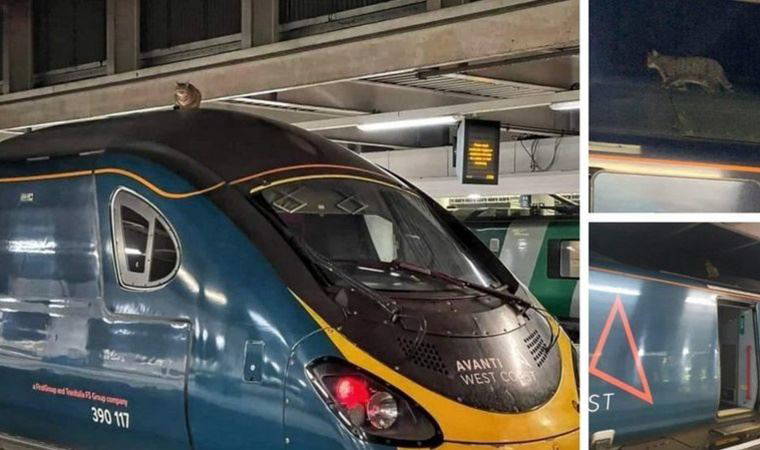 İngiltere'de Londra-Manchester seferini yapmaya hazırlanan hızlı trende, kalkıştan önce bir vagonun üzerine çıkan kedi, 2,5 saatlik bir çabayla kurtarıldı.