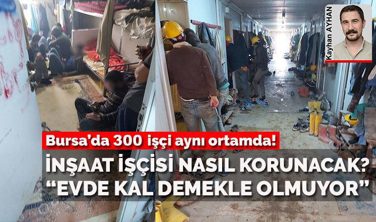 Bursa’da yapımı devem eden Orhangazi TOKİ Şantiyesi’nde çalışan yaklaşık 300 işçi aynı lavabo ve banyoyu kullanıp, aynı yemekhanede iç içe yemek yiyor. Koğuşlarda ise 10 kişilik gruplar halinde uyuyan işçiler şantiyede hiçbir önlem alınmadığını, ücretli izin talep ettiklerini aktardı. İşçilerin görüntülerini twitter hesabından paylaşan HDP Ankara milletvekili Filiz Kerestecioğlu, “Bugün hayatı üreten onlar. Hayatı devam ettiren bütün işçilerin evde kalmaları için ücretli izin gerekyor. Evde kal demekle olmuyor. Onların geçimlerinin sağlanması gerekiyor. Bu devletin bunu yapamaması üzüntü verici. Bizde onları seslerini duyuruyoruz” dedi.