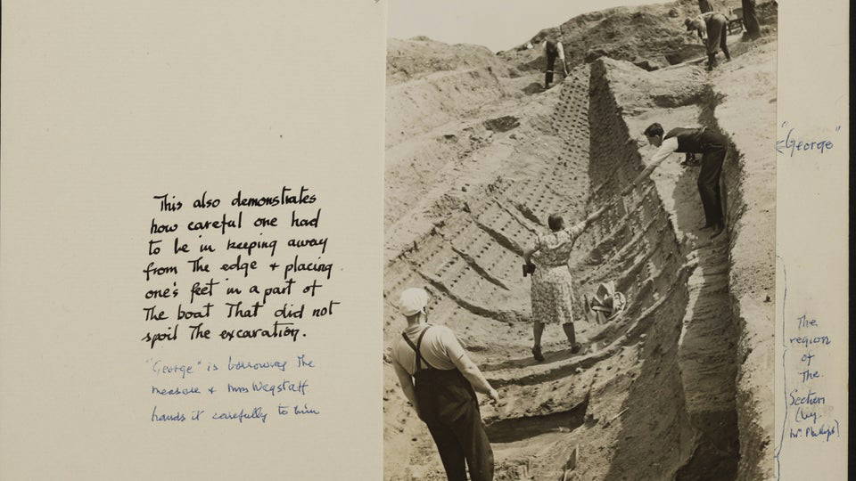 1937 yılında başlayan ve Anglo-Sakson tarihinde çok önemli bir buluşa yol açan kazılarda büyük bir gemi iskeletine rastlandı. Bu iskeletin bulunması üzerine British Museum devreye girdi ve deneyimli arkeolog Charles Phillips kazı başkanlığını Basil Brown’dan devralarak uzun yıllar sürecek kazıları yürüttü. Aslında Sutton Hoo’da bir mezarlık olduğu uzun zamandır tahmin ediliyor ancak bunun Vikingler döneminden kalma olduğu düşünülüyordu. Bulunan gemi iskeleti ise daha öncesine ait bir Anglo-Sakson yerleşiminin olduğunu kanıtladı. Çıkan çok sayıda değerli eşyanın içinde (İngiltere’de bulunmuş en değerli hazine çıktı buradan) Bizans işi gümüş parçalar bile vardı.