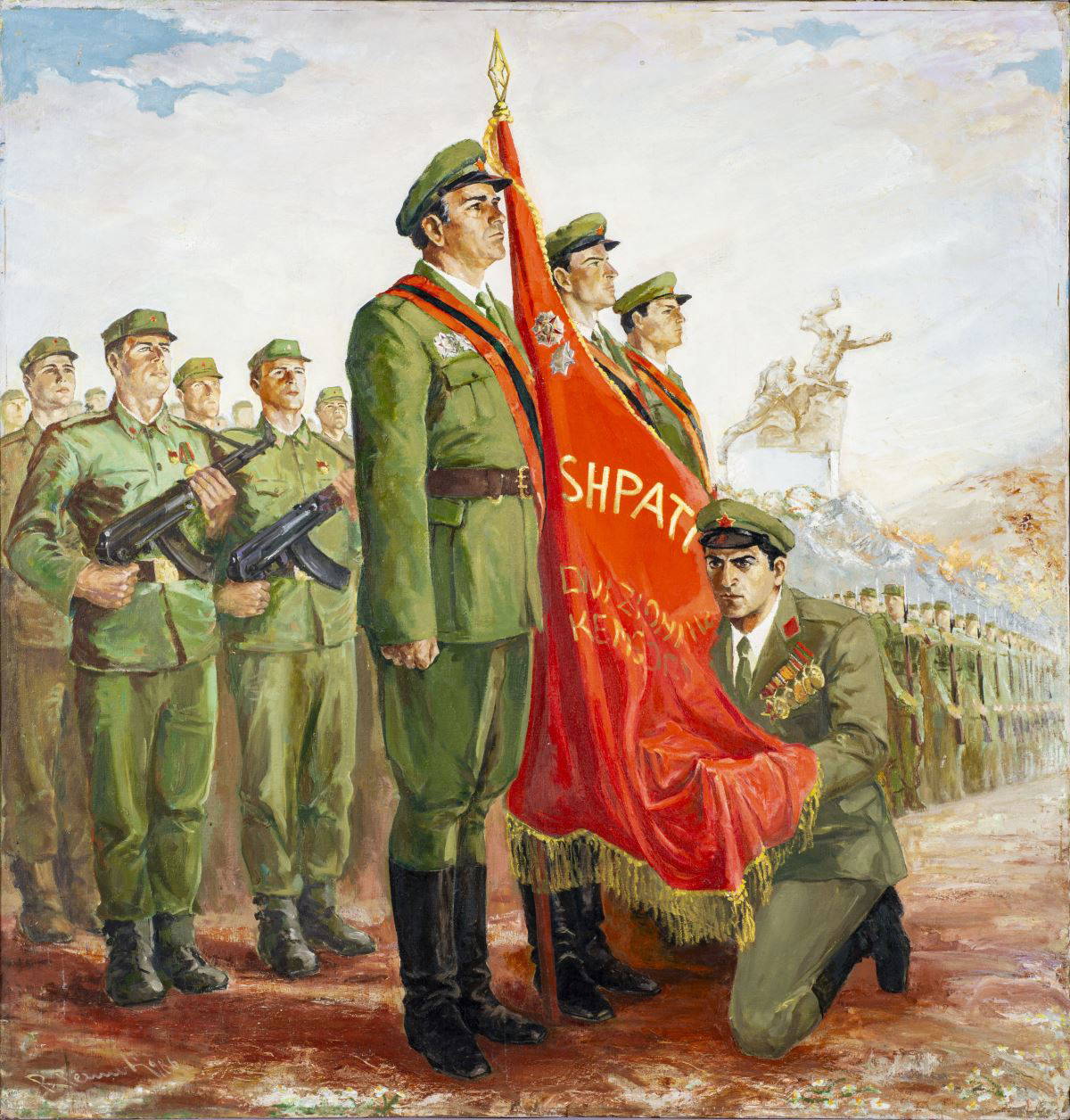 Evet, 1940’lı yıllardan 1980’lerin sonlarına dek (SSCB'nin bittiği, Doğu Bloku'nun çözüldüğü yıllarla birlikte bitiyor bu dönem) yapılmış eserlerin dönemin hakim sanat akımlarıyla çok da haşır neşir olmadığını, en hafif tabiriyle eski moda olduğunu düşünebilirsiniz, yanlış da olmaz. Bir çoğunda Arnavutluk’un kurucu lideri Enver Hoca’nın resmedildiği tabloların propaganda sanatının bir uzantısı gibi duran tarzda yapıldığını görmek çok zor değil. Yine de sanatsal kaliteleri tartışılmayacak denli yüksek ve çarpıcı.