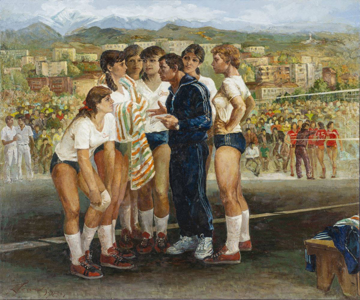 Robert Përmeti’nin 1984 tarihli "Kazanmak Zorundayız" adlı resminde ise, Libraş Stadyumu'nda maç yapan bir grup sporcu genç kız görülür. Arnavut spor tarihinin en önemli anlarından birini konu alan resim, kadın voleybol oyuncularının takım ruhu ve kazanma arzusuna dikkat çeker. Resim, o dönem kadınların özgürleşmesini önemseyen Arnavutluk'ta çok ilgi çekmiş ve beğenilmişti. Arnavutluk görsel sanatlarında o zamana dek çıplak figürler kabul edilemez, sistem tarafından kınanır, sosyal ahlaka aykırı olarak değerlendirilirdi. Oldukça yankı yaratan resim Arnavutluk hükümetinin düzenlediği ulusal sanat yarışmasına kabul edildi. Bu yenilikçi yaklaşım, Arnavut kadınının artık askeri giysilerle değil, daha sivil bir biçimde imgelenmesine yönelik bir çabaydı. Eser, sosyalist rejim döneminde toplumdaki cinsiyet eşitliğini vurgulaması bakımından önemlidir. (Artan Shabani - Küratör)