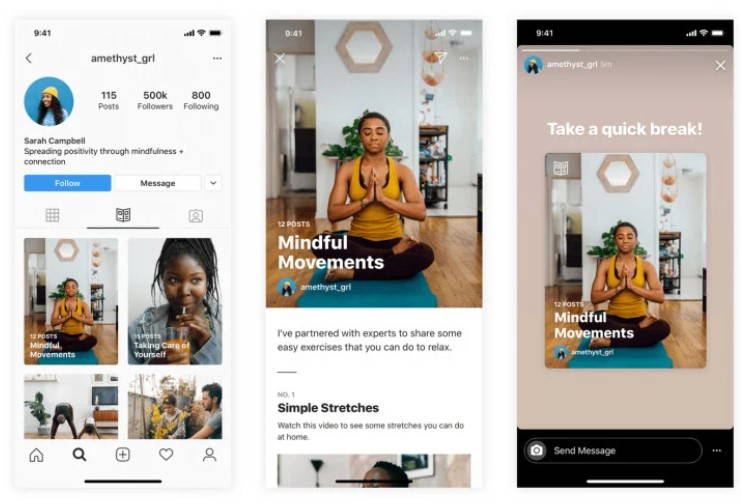 Instagram'ın yeni özelliği, takip ettiğiniz hesaplar tarafından sunulan tavsiye içeriklerin görüntülenmesini sağlayacak. Özellik şu an için sağlıkla ilgili tavsiye edilen içeriklere odaklanıyor olsa da ilerleyen dönemde içerik kategorilerinin genişleyeceğini tahmin etmek zor değil.