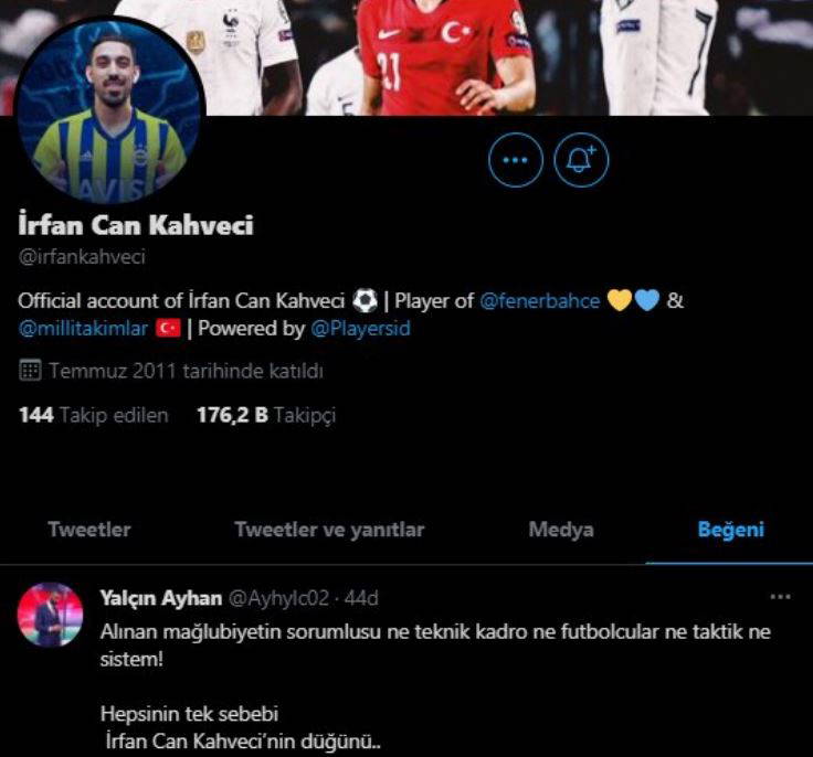 Eski futbolcu ve futbol yorumcusu Yalçın Ayhan maç sonrası, "Alınan mağlubiyetin sorumlusu ne teknik kadro ne futbolcular ne taktik ne sistem! Hepsinin tek sebebi İrfan Can Kahveci'nin düğünü..." paylaşımında bulundu.