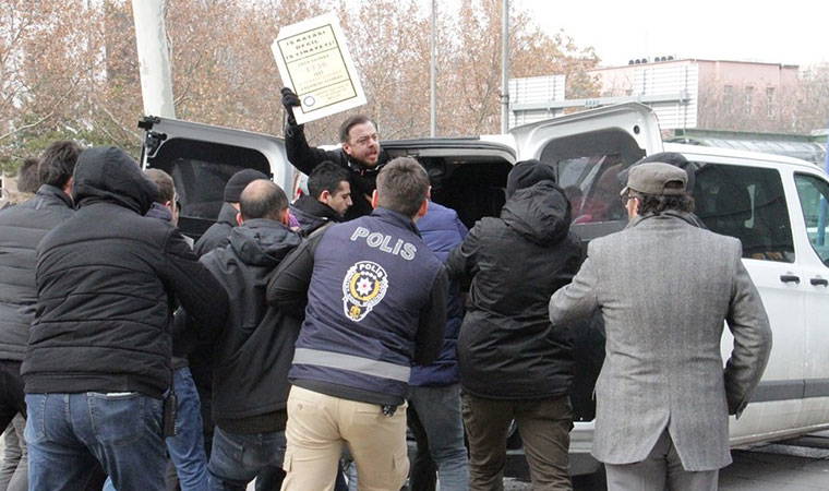 İsçi Sağlığı ve İş Güvenliği Meclisi (İSİG) üyeleri Ankara Madenciler Anıtı önünde açıklama yapmak istedikleri için gözaltına alındı.