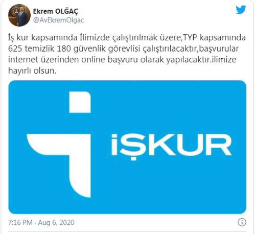 Siirt İŞKUR'un internet sitesi ve sosyal medya hesaplarında herhangi bir bilgiye yer verilmezken, duyuruyu AKP Siirt İl Başkanı Ekrem Olgaç’un sosyal medya hesabında yapması dikkati çekti.