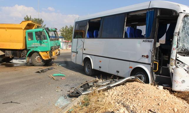 Edinilen bilgiye göre kaza, Gaziantep 4. Organize Sanayi Bölgesi'nde meydana geldi. Organize Sanayi Bölgesi'ndeki bir fabrikaya işçi taşıyan Ali A. idaresindeki 27 S 3472 plakalı servis otobüsü ile Mehmet G. idaresindeki 01 JB 589 plakalı hafriyat kamyonu üç yol kavşağında kafa kafaya çarpıştı.